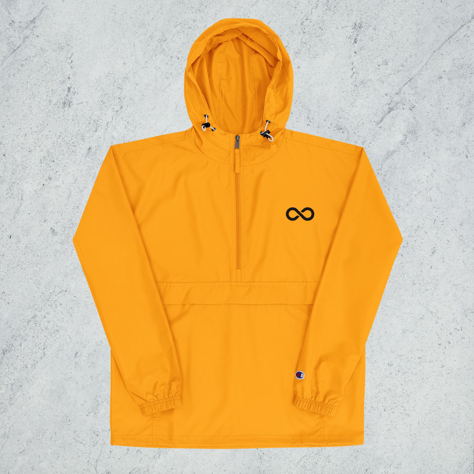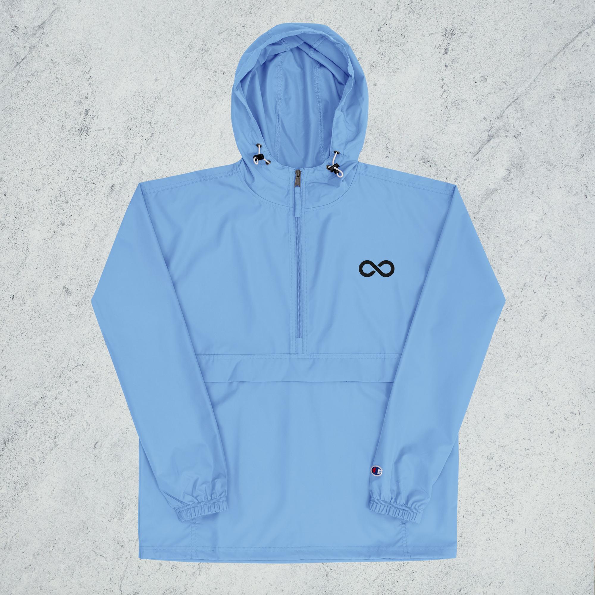 Protect yourself from the elements with this CHAMPION packable jacket! This wind and rain resistant polyester jacket, with a detailed embroidery design (CLINITY TALENT infinity logo), has a practical hood, front kangaroo pocket, and zipped pouch pocket which you can pull out and use to scrunch the jacket into for convenient storage.